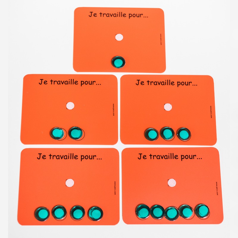 Chaque lot comprend les jetons (de différentes couleurs) et le Velcro® pour accrocher ces derniers.