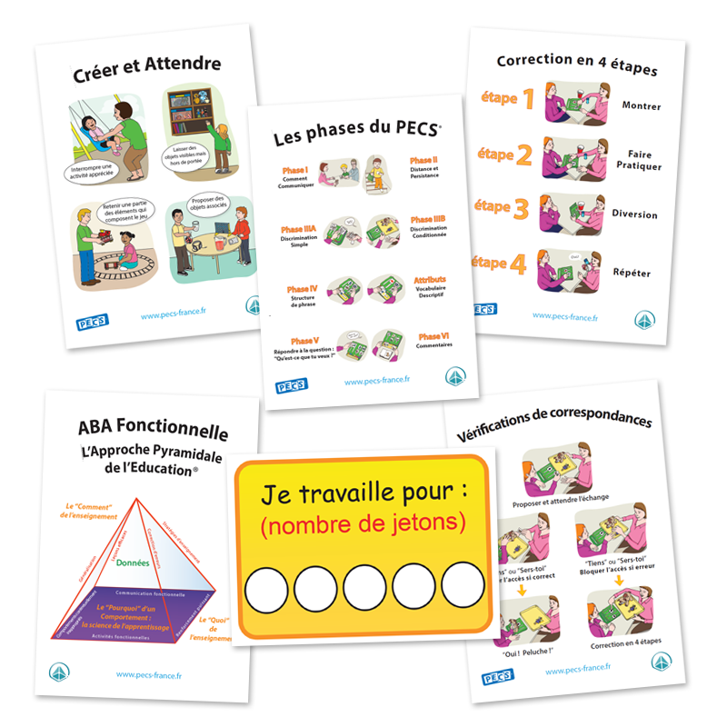 Ces petites "antisèches" autocollantes taille A7 (7.4 x 10.5 cm) seront de parfaits rappels lors de différentes phases du PECS.